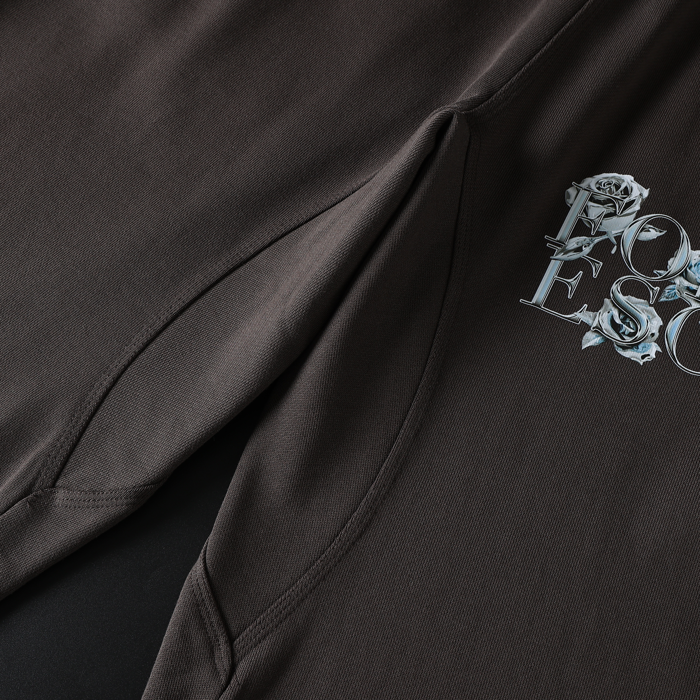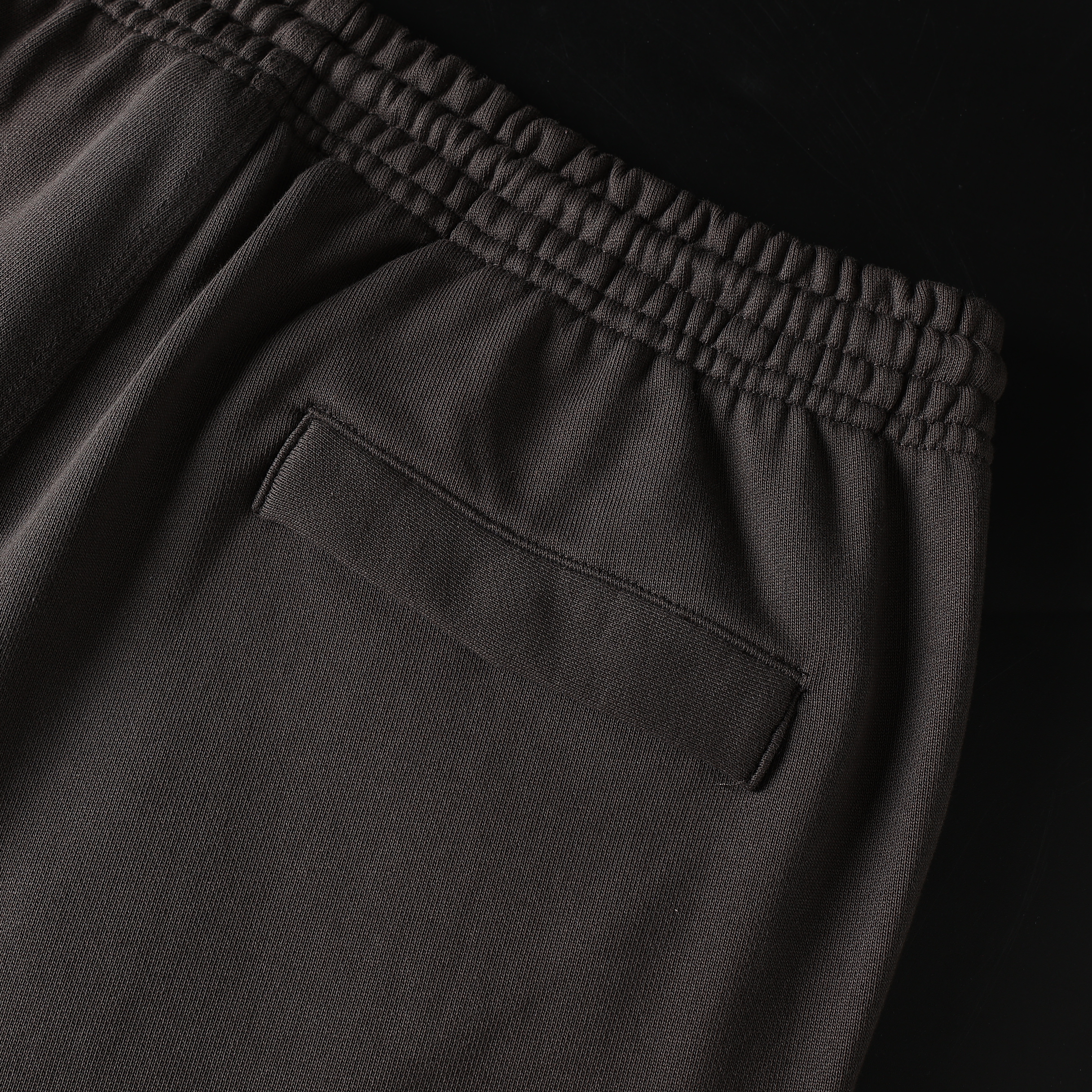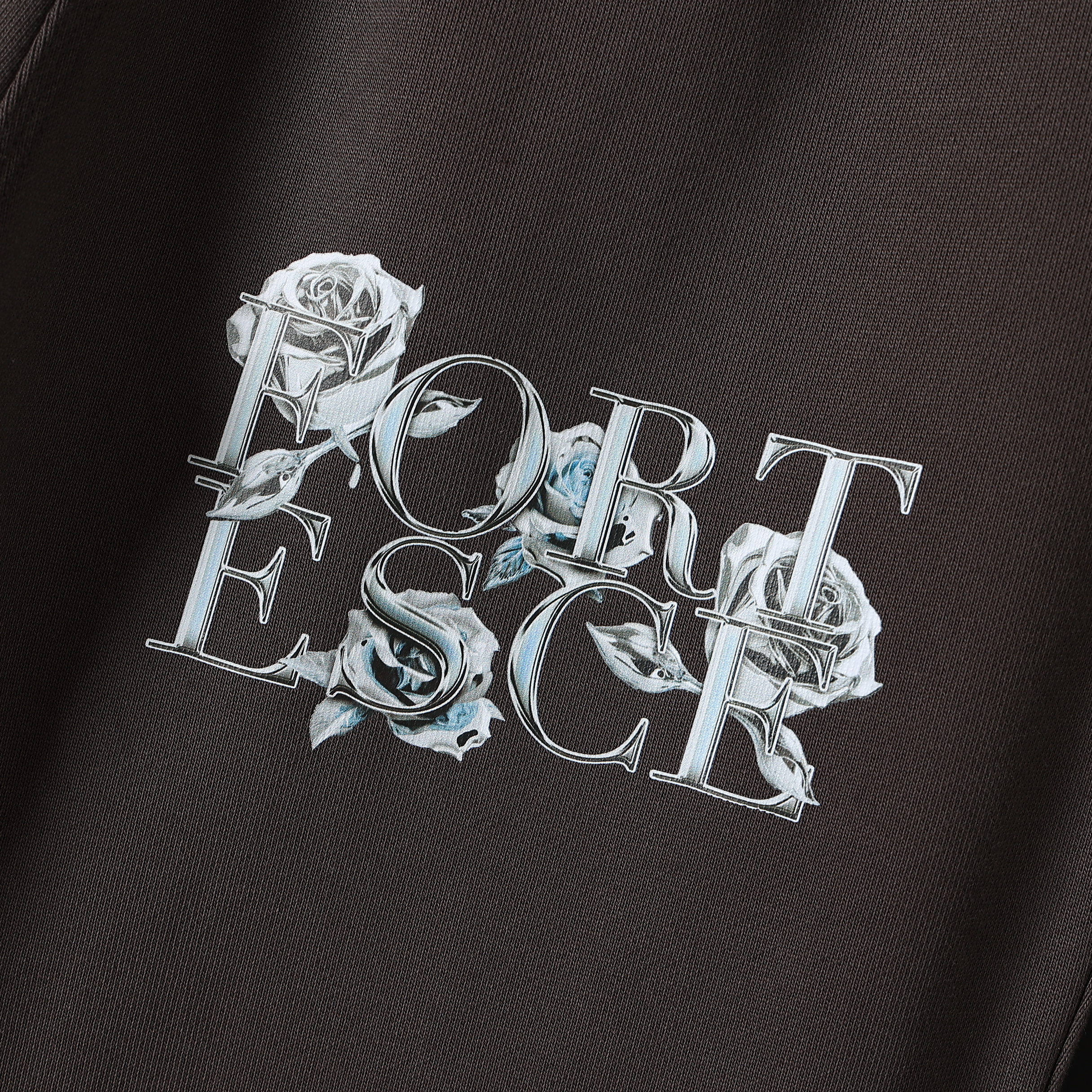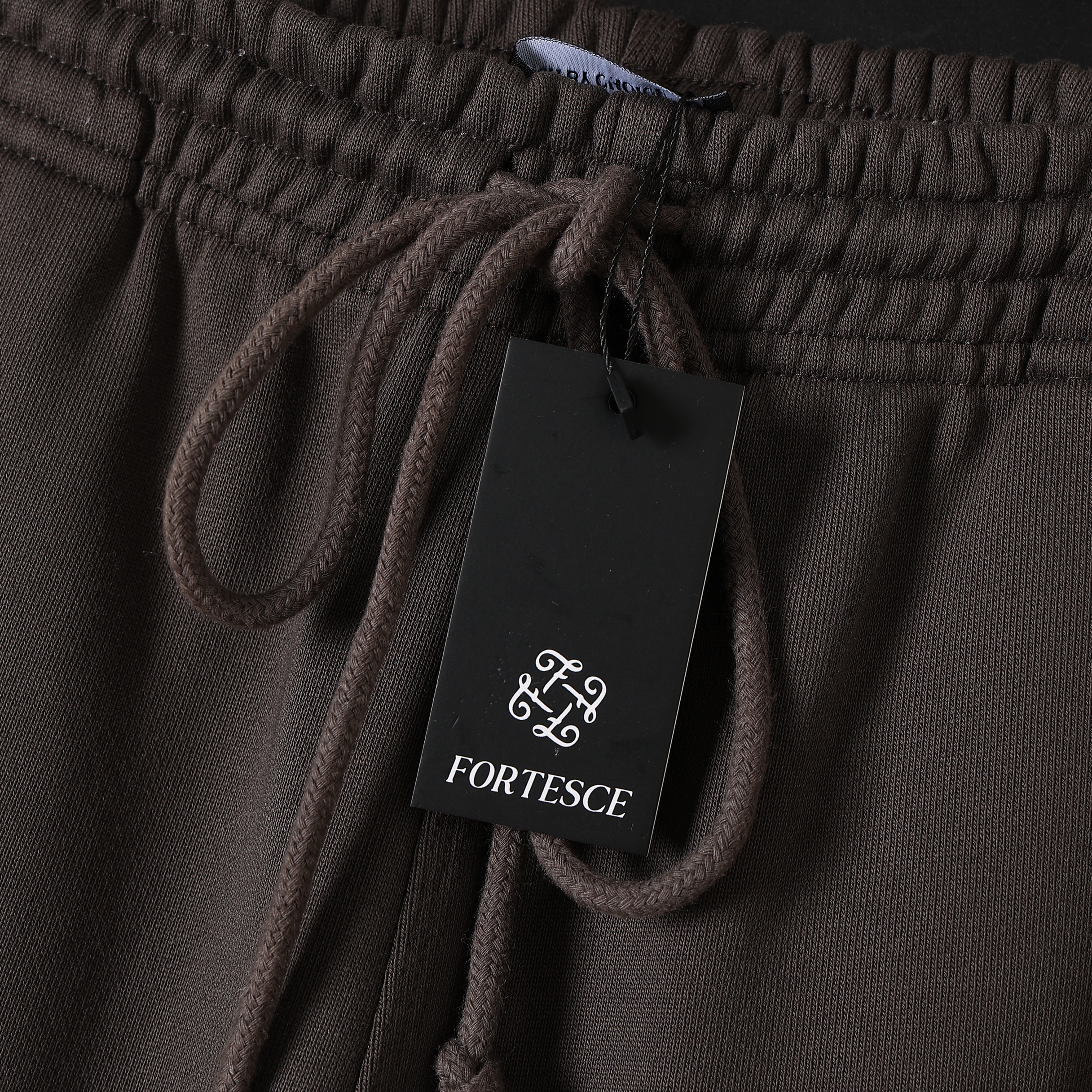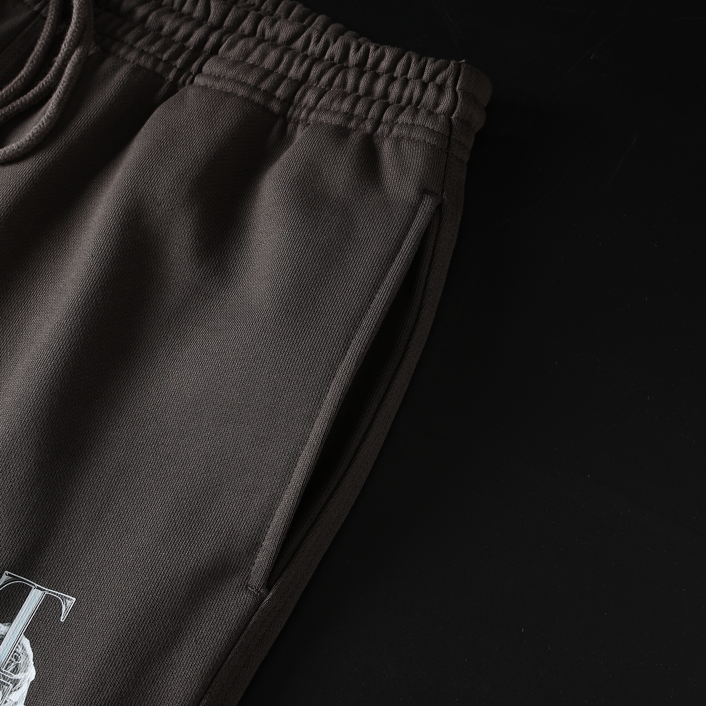 Oversized heavyweight joggers in charcoal dark grey. Designed with a relaxed, straight-leg fit and no cuffs for a clean drape. Crafted in premium French Terry organic cotton with drawstring waistband for adjustable comfort. Fortesce Chrome Lux graphic applied via direct-to-garment print on thigh.