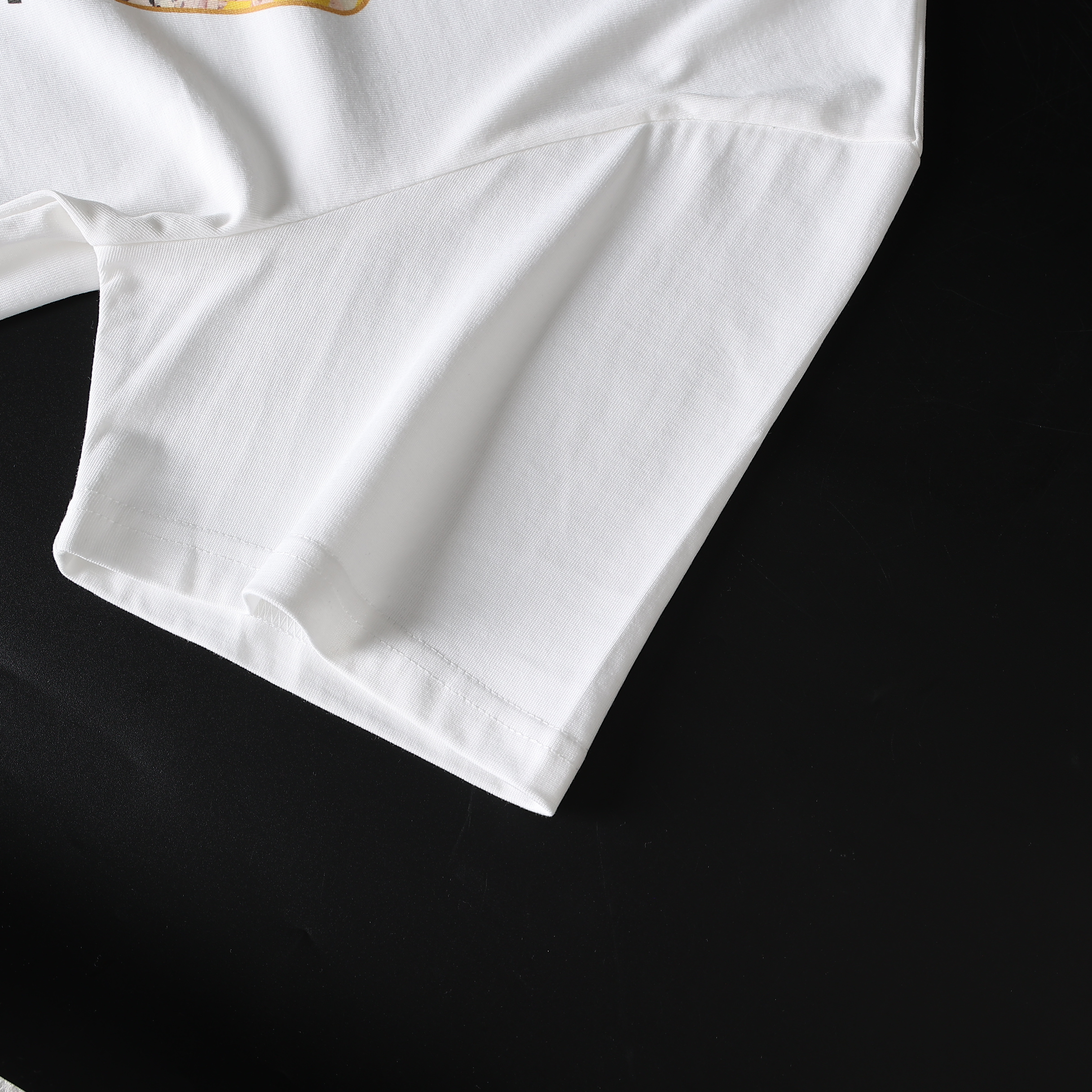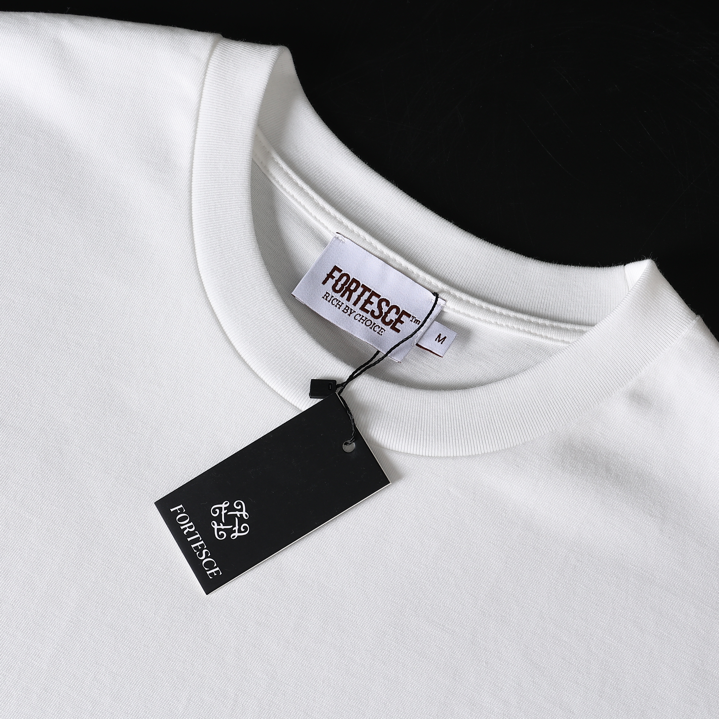 Features a high thick collar for a premium fit and silhouette.- Oversized Fit- Heavyweight Tee- White- French Terry Cotton- High Thick Collar- Direct to Garment Printed (Front and Back)- Short Sleeves- Crew Neck