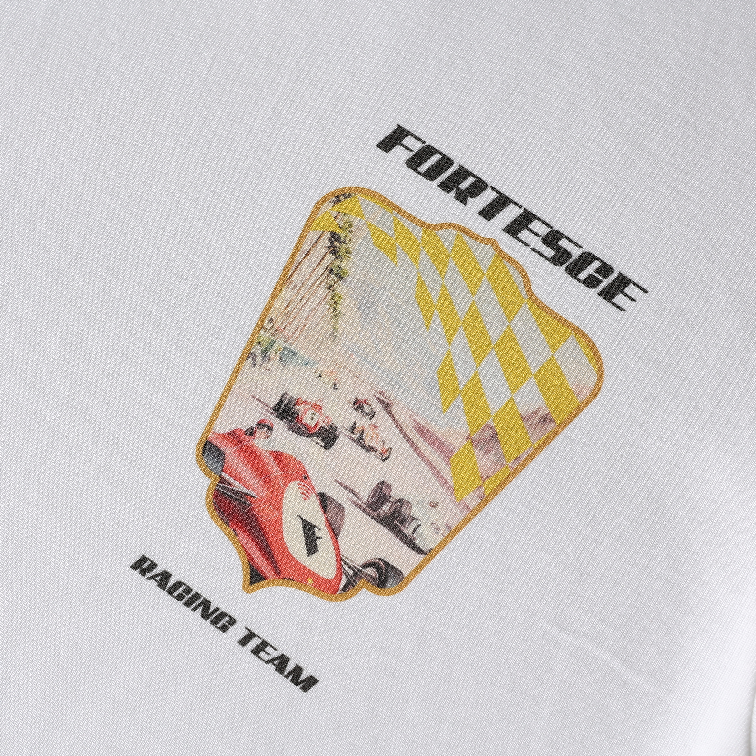 Fortesce Original Racing graphic applied via direct-to-garment print on both the front and back for a bold, lasting finish.